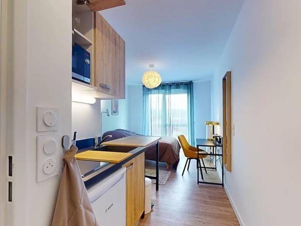 Louez votre STUDIO MEUBLÉ ET ÉQUIPÉ dans une habitation moderne et sécurisée disposant d'espaces partagés spacieux et conviviaux.