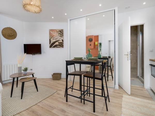 Un espace optimisé pour le confort Le studio se compose de : - Une pièce principale chaleureuse et lumineuse - Un coin cuisine équipé : réfrigérateur, plaques de cuisson, micro-ondes, four, vaisselle, hotte… tout y est - Une salle de douche + WC, fonctionnelle et moderne - Loué meublé et équipé, prêt à vous accueillir Immeuble calme et sécurisé . Proche des transports : métro D et bus, idéal pour vos déplacements quotidien .