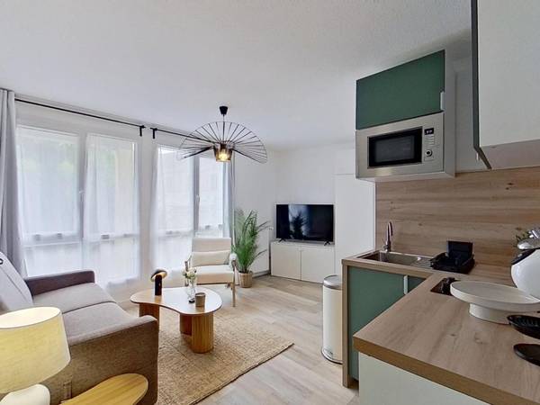 Venez découvrir ce joli studio meublé au style contemporain situé au Rez-de-chaussé avec petit cour privative