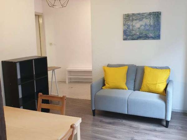 Très grand studio de 30 m² avec salon séjour, coin sommeil séparé, 1 salle de bain avec douche, 1 cuisine, 1 WC, chauffage individuel au gaz. Libre de suite