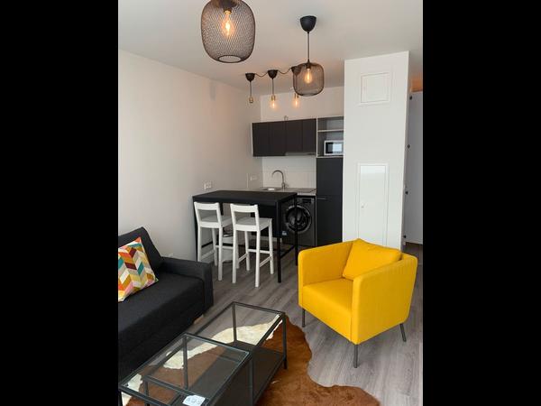 Le logement se compose d’une entrée avec de nombreux rangements, d’une pièce de vie avec canapé lit convertible 140X195, bureau et rangements, d’une cuisine équipée de 2 plaques de cuisson, un frigidaire, un micro-ondes, une machine à laver, une table et deux chaises hautes, une salle d’eau avec douche et un WC séparé.