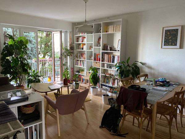 L’appartement se compose : ⁃ d’une cuisine séparée et équipée (four, réfrigérateur, micro-onde, plaque vitrocéramique, lave-vaisselle, table) ⁃ de deux chambres de 11m2 et 16m2 (bureau + lit 2 places + armoire + bureau) ⁃ d’un séjour (table + canapé 3 places convertible) de 20m2 avec balcon donnant sur la cour arrière ⁃ d’une salle de bain avec baignoire d’angle ⁃ d’un toilette séparé ⁃ de nombreux rangements dans le couloir Le chauffage est collectif (réseau de chaleur urbaine) et la production d’eau chaude individuelle électrique. Au sous-sol de l’immeuble vous trouverez également un local à vélo. Le stationnement d’une voiture est possible dans la cour de l’immeuble. Bail meublé d’un an, colocation possible avec bail solidaire. Loyer : 1030 € / mois Charges (chauffage inclu) : 160 € / mois (provision mensuelle régularisation annuelle) Dépôt de garantie : 2 mois de loyer hors charges - 2060 € Consommation électrique moyenne (2021, 2022, 2023) : 2372 kWh (environ 600 € par an)