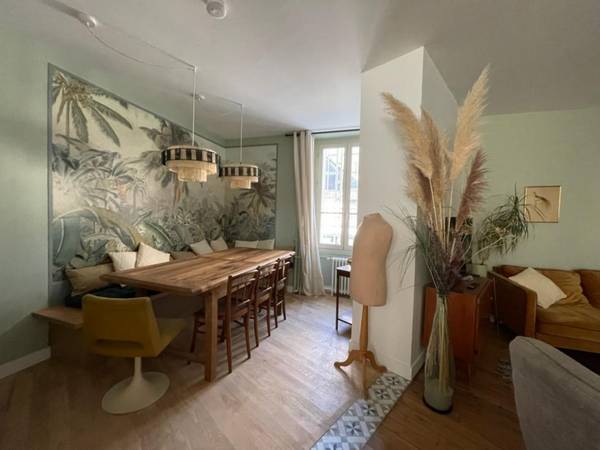 La maison, d'une superficie de 300 m² a été entièrement rénovée et réaménagée pour équilibrer confort privé et vie en communauté. Elle dispose d'une cuisine à l'américaine ouverte sur la terrasse et le jardin de 150 m², donnant également sur un salon et une grande salle à manger.