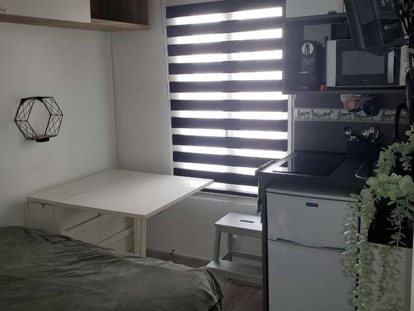 Actuellement sur Airbnb courte durée Je recherche maintenant idéalement une moyenne durée d'environ 6 à 9 mois SANS APL Tiny logement (10m2) paisible et central. Bien agencée, l'essentiel y est. Lit 140 surélevé sur espace rangement. Coin bureau ou table a manger.. Salle de bain wc douche lavabo. TV. Cuisinette avec espace vrai congélateur. Climatisation possible. Donnant sur une cour. Calme. Poussette et vélo possible Au 1er et dernier étage sans ascenseur,