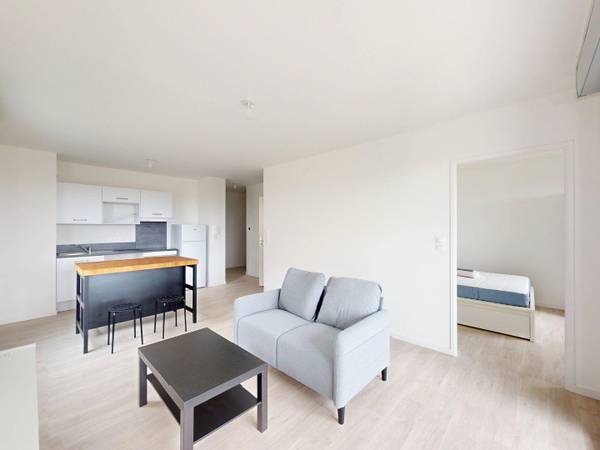 Oqoro vous présente ce T3 de 61 m² situé au 4 Rue Jean Jaurès à Colombelles. Le logement se trouve au troisième étage d’une résidence neuve avec ascenseur et local à vélos. 🏡 LE LOGEMENTCet appartement neuf s’ouvre sur une belle pièce de vie lumineuse, aménagée avec un canapé, une table basse et un meuble TV. La cuisine ouverte est entièrement équipée : four, plaques de cuisson, hotte, évier, réfrigérateur avec compartiment congélateur, ainsi que de nombreux rangements et ustensiles de cuisine. Un îlot central avec des tabourets vient compléter l’espace et offre un coin repas convivial. Le séjour donne accès à un balcon, idéal pour profiter d’un extérieur agréable. La salle de bain dispose d’une baignoire, d’un meuble vasque avec miroir, d’un sèche-serviettes ainsi que de rangements. Les WC sont séparés. Les deux chambres sont équipées d’un lit double et d’un placard de rangement. Une chambre dispose également d’un bureau. Une place de parking au sous-sol est à disposition des locataires.