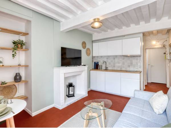 Un intérieur optimisé & chaleureux Ce cocon fonctionnel s'articule autour de : Un salon lumineux, véritable pièce de vie, équipé d'une TV et d'un canapé confortable De nombreux rangements, pensés pour un espace organisé et agréable ️ Une cuisine ouverte moderne, équipée : réfrigérateur, plaques de cuisson, hotte ️ Une chambre cosy et apaisante Une salle d'eau moderne avec machine à laver L'ensemble forme un appartement pratique, moderne et prêt à vivre.