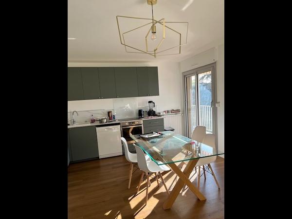 🏠 L'appartement fait environ 100 m², 4 chambres au total, 2 salles de bain (une par binôme de colocataires), une cuisine équipée ouverte sur le salon, un balcon. Il dispose également d'une cave et d'un local vélo.