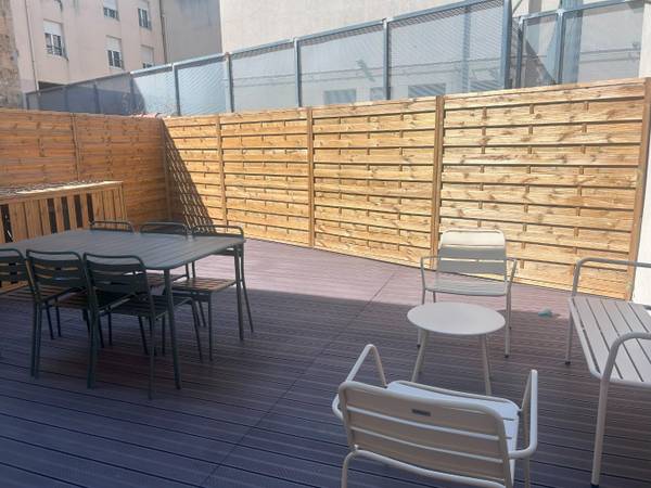 Nous proposons à la location un grand T3 entièrement meublé et refait à neuf avec une terrasse ensoleillée de 40 mètres carrés. L'appartement est traversant. L'appartement est composé de deux grandes chambres avec rangements, une salle d'eau avec baignoire, vasque et machine à laver, une cuisine entièrement équipée (lave-linge, four, plaques etc), un salon avec climatisation ainsi qu'une terrasse meublée. Proche des commerces et des transports.