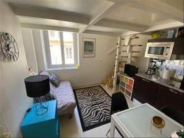 Studio Nice Carré d'Or Hyper centre à deux pas de la plage et du Negresco! 20m2 très fonctionnel, à pieds toutes commodités Décoré, meublé et équipé (pas de box internet). Chambre en mezzanine (ou l'on tient debout facilement) + BZ convertible dans le salon pouvant héberger 4 personnes Cuisine équipée (four, micro ondes, plaques, machine à laver, lave vaisselle, petit frigo) et entierement équipé. 1 WC+ 1 SDB indépendant chauffage individuel sur cour tres calme on entend que bruit des oiseaux 2eme et avec ascenceur faibles charges (à rajouter au prix du loyer affiché) à 800m de place Massena et 300m de la plage, 6min du tram, et 30min de laeroport en tram