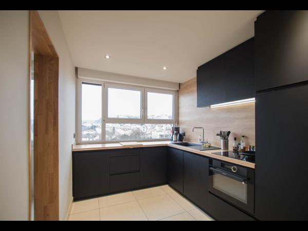 - Cuisine entièrement équipée : lave-vaisselle, réfrigérateur avec freezer, plaque induction, four combiné micro-ondes et vaisselle complète