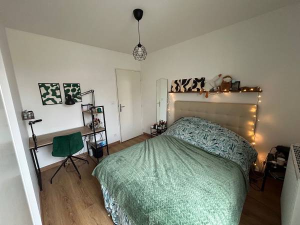 55m², cosy et lumineux, un vrai cocon. Ici c'est pour chiller et se laisser vivre ! La chambre disponible fait 11 m² avec lit, placard intégré, quelques étagères au mur et bureau, la déco t'appartient ! La cuisine fait 20m², toute équipée. Il y a un garage à vélo et un petit espace vert dans la copro. L'appart est côté rue, mais relativement calme. Dans la salle de bain, il y a un rangement à partager, une baignoire et une machine à laver. Toilettes séparées.