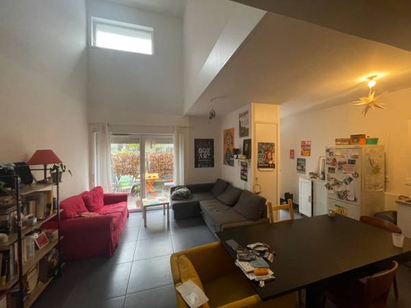 La maison fait 80m2 en duplex et elle est située dans le quartier plaine de baud (proche Beaulieu avalante, 10 min du centre en vélo et bus). Les parties communes se trouvent au rez-de-chaussée avec une terrasse sympa, une belle pièce à vivre salon/cuisine et un wc. En haut, il y a les chambres, une salle de bain double vasques avec baignoire et un second WC séparé 😊