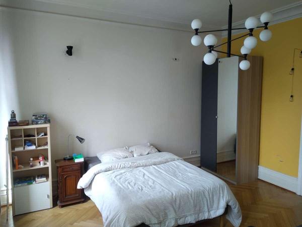 Il s'agit de la sous location (dates exactes à définir,à partir de fin janvier, pour 1 à 2 mois, flexible) d'une grande chambre complètement meublée, exposée sud. Dans la chambre, on retrouve : lit/matelas/couette/etc. , grande armoire, commode, un bureau/chaise de bureau, un canapé.