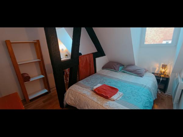 L'appart est un typique duplex alsacien sous les toits avec poutres apparentes, très cozy, au 3ème étage sans ascenseur, avec cuisine américaine (idéale pour se retrouver autour d'un verre ou d'un café).