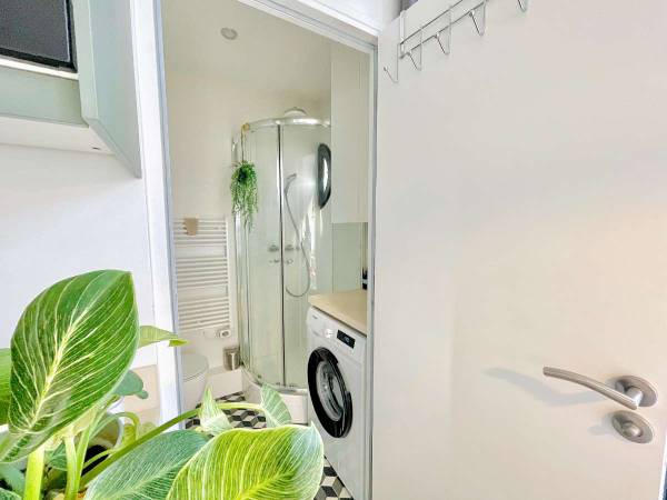 Cet appartement entièrement équipé offre tout le confort nécessaire : - Lit double neuf (140×190) pour un repos optimal - Salle d’eau moderne avec douche et WC - Cuisine équipée : réfrigérateur/congélateur, plaques de cuisson, micro-ondes, lave-vaisselle, ustensiles de cuisine - Machine à café Nespresso et bouilloire - Lave-linge et kit de repassage - Rangements dans toutes les pièces - Espace de vie cosy et lumineux