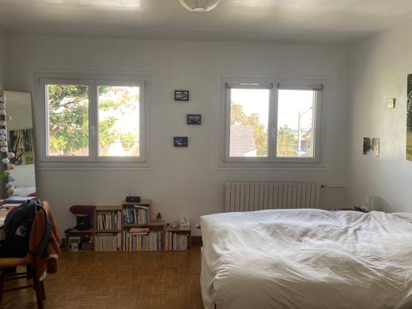 Pendant mon absence je sous-loue ma grande chambre meublée, en colocation dans une maison avec jardin, partagée avec 2 autres colocataires. Chambre lumineuse, lit double avec surmatelas, grand dessing, grand bureau.