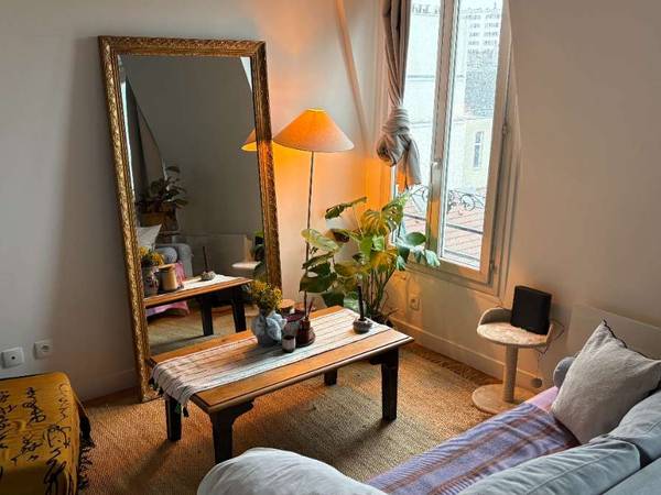 Bonjour, Je propose mon appartement en sous-location du 10 février au 3 mars : Studio de 25m² avec mezzanine, situé au 6ᵉ étage sans ascenseur, très lumineux, avec une petite vue sur le Sacré-Cœur. L’appartement est entièrement équipé et agréable à vivre : – Wifi – Machine à laver – Vidéoprojecteur – Cuisine équipée, rangements et … – Tous les commerces à proximité (Super U en bas, métro à 200m) Idéal pour une personne seule, dans un environnement calme et cosy.