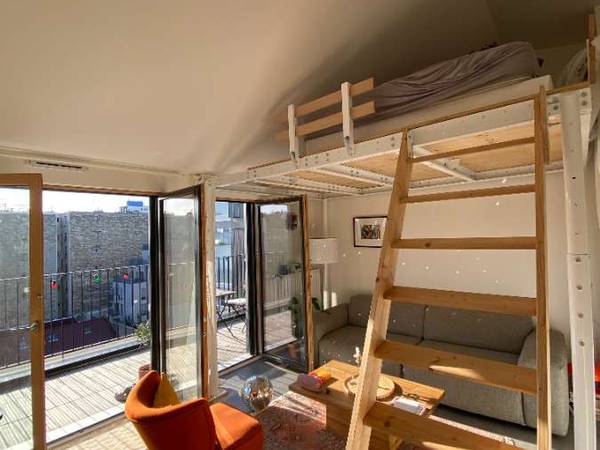 Il s'agit d'un appartement très agréable avec une mezzanine pour coin nuit. Il est tout équipé, lumineux et placé juste en face du métro de porte de pantin.
