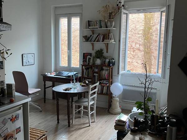 Dispo du 20 avril au 20 juin 1er étage Donne sur cour, calme Proche gare, café, épicerie, librairie Rempli de livres et de plantes Électricité à calculer lors du départ