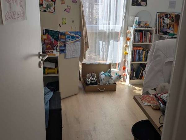 Texte de Flo : Salut ! Je m'appelle Flo, j'ai 27 ans et je suis prof des écoles. Dans la coloc il y a aussi Tomie le chat, attention aux allergies 🙂 Sinon elle est adorable. J'aime lire et nager et voir mes copaines et je joue de la clarinette (mais rarement à l'appart). Je passe un peu de temps à l'appart, surtout en fin de semaine. J'ai besoin que la coloc ne soit pas trop bruyante, surtout les soirs à partir de 22h environ. Les chambres sont mitoyennes et pas très isolées donc ça peut être une contrainte... Coloc en mixité choisie, donc pas de mec cis. Au plaisir de te rencontrer !